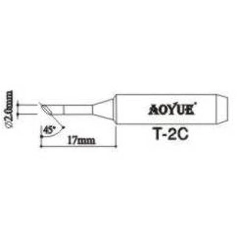 Konica Aoyue T2c ima premer 6 mm, skupno dolžino približno 40 mm in ocenjeno težo 7 g. Te mere olajšajo njeno uporabo v združljivih postajah in pri natančnem spajkanju.