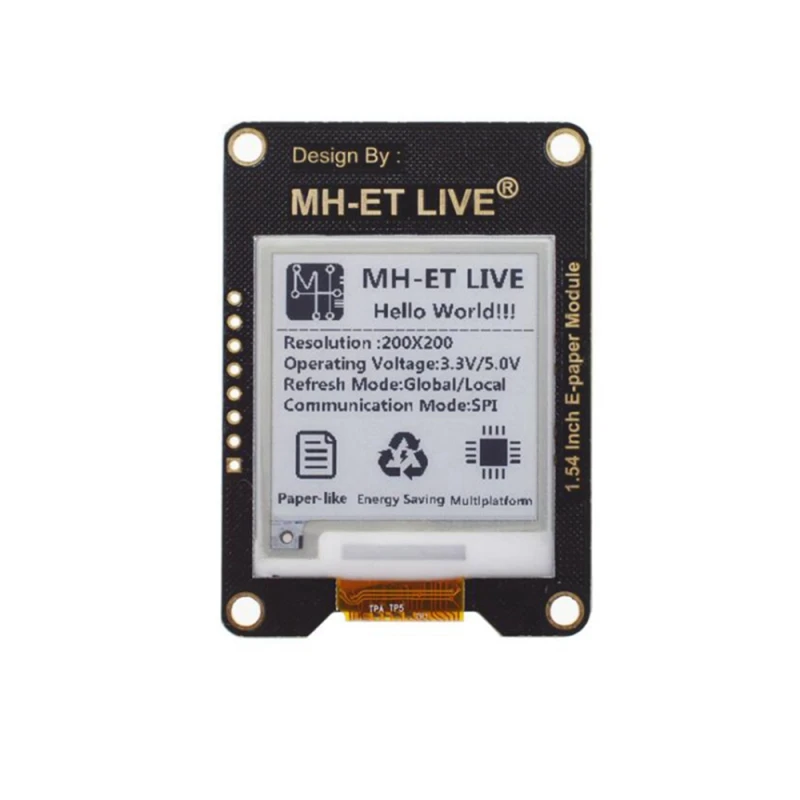1,54-palčni e-papirni modul z vmesnikom SPI je zaslon z elektronskim črnilom (ePaper/eInk), zasnovan za jasno in učinkovito prikazovanje v elektronskih projektih. Ta modul je združljiv s priljubljenimi platformami, kot so Raspberry Pi, Arduino in STM32, kar olajša njegovo integracijo v različne razvojne projekte.