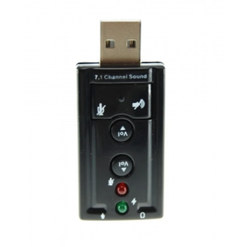 7.1 USB zvočna kartica je zunanja naprava, zasnovana za preprosto in brez zapletov izboljšanje kakovosti zvoka vašega računalnika ali prenosnika. Zaradi združljivosti z več operacijskimi sistemi je ta kartica praktična rešitev za vse, ki iščejo kakovosten prostorski zvok brez potrebe po namestitvi dodatnih gonilnikov.