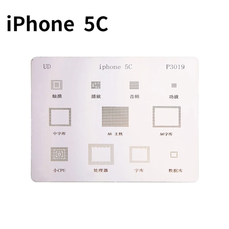 Stencil plošča IC iPhone 5C je bistveno orodje za tehnike in strokovnjake za popravilo mobilnih naprav, še posebej za iPhone 5C. Izdelana je s strani Mlink in je ta šablona za neposredno segrevanje zasnovana za lažji postopek BGA reballinga ter zagotavlja natančno in učinkovito spajkanje integriranih vezij naprave.
