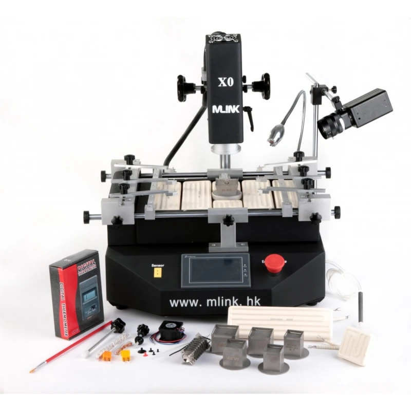 Mlink X0 reballing postaja s HD kamero je profesionalno orodje, zasnovano za spajkanje in odspajkanje BGA komponent z visoko natančnostjo in naprednim nadzorom.