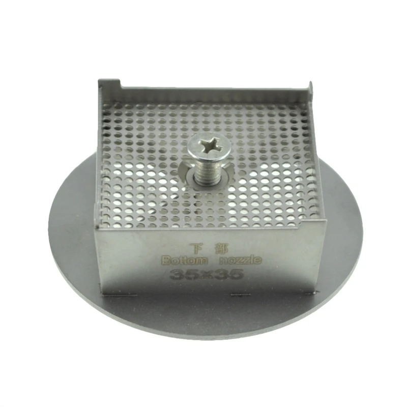 Glavna prednost te šobe je njena specifična velikost 35x35 mm, ki omogoča bolj usmerjen nanos toplote na majhna integrirana vezja. To zmanjša tveganje poškodb okoliških komponent in izboljša natančnost pri BGA predelavah. Poleg tega njena fiksna spodnja zasnova dovoda zraka zagotavlja večjo toplotno stabilnost v primerjavi z univerzalnimi šobami.
